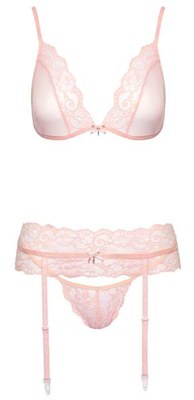 Set reggiseno, reggicalze e perizoma realizzato in tulle e pizzo delicato. Morbido ed elastico su tutto il perimetro per il massimo comfort. Reggiseno con spalline regolabili e chiusura a gancio sulla schiena, proprio come il reggicalze con bretelle regolabili. Questo sofisticato perizoma seduce con le sue due strette fasce elastiche che si uniscono all'inguine. Taglia: L/XL