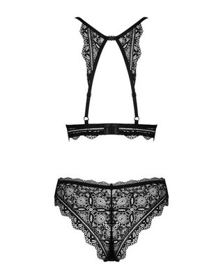 Set conposto da reggiseno con ferretto e culotte in bellissimo e morbido pizzo elasticizzato. Reggiseno con ferretto e elemento decorativo tra le coppe imbottite. Elegante dettaglio in pizzo sulla schiena con piccola chiusura e gancio regolabile. Anche le spalline possono essere regolate per adattarsi. La culotte mette in risalto i glutei sexy grazie all'alta fascia di pizzo in vita. Taglia: S M
