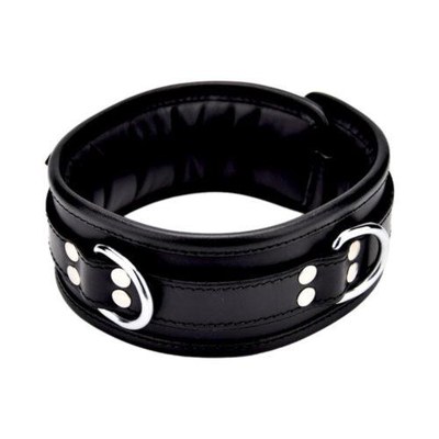 Collare regolabile in pelle con imbottitura e anelli. Misura: L 34,5-54,9cm max H 6,5cm