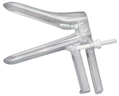 Speculum vaginale con becco dilatatore lungo 10 cm, regolabile e con blocco. Dilatabile fino a massimo 12 cm. Monouso-Trasparente. Materiale: ABS