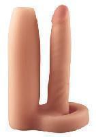Guaina che aumenta la dimensione del pene con penetratore anale, in materiale realistico.